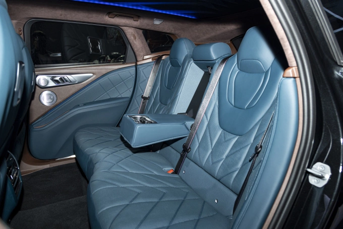 Hàng ghế thứ hai trên BMW XM bọc da và có họa tiết 3D.